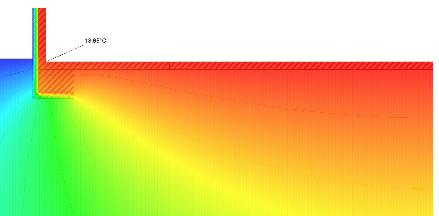 Bodenplatte mit Randdämmung: Temperatur in der Wärmebrücke 18,65°C